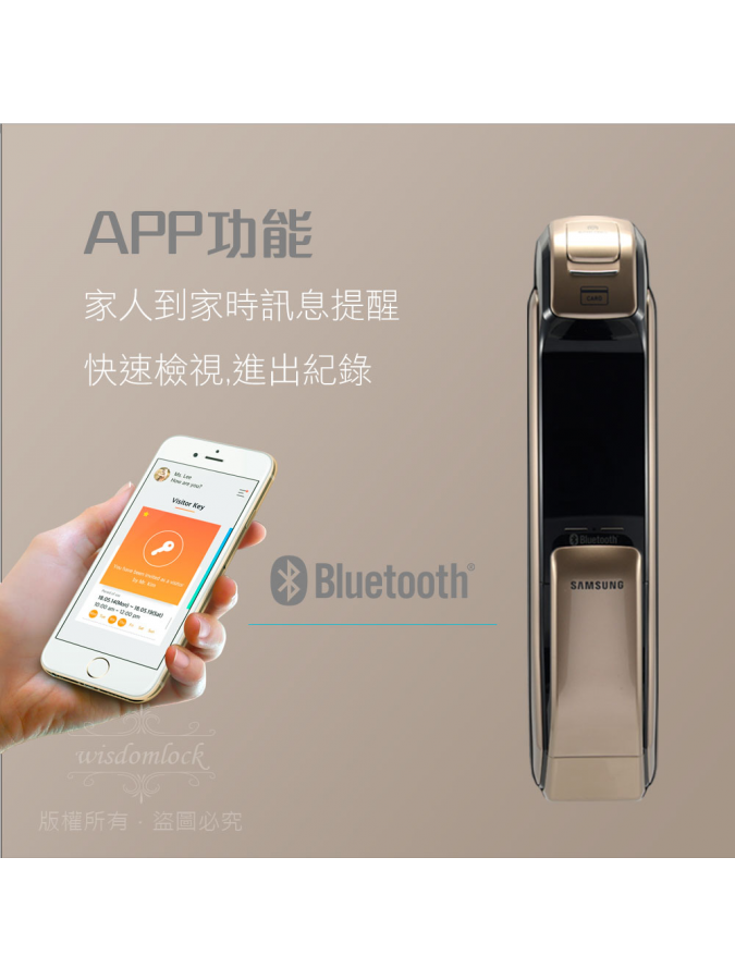 推薦三星 電子鎖 SAMSUNG 指紋.密碼.卡片.鑰匙手機藍芽開門鎖