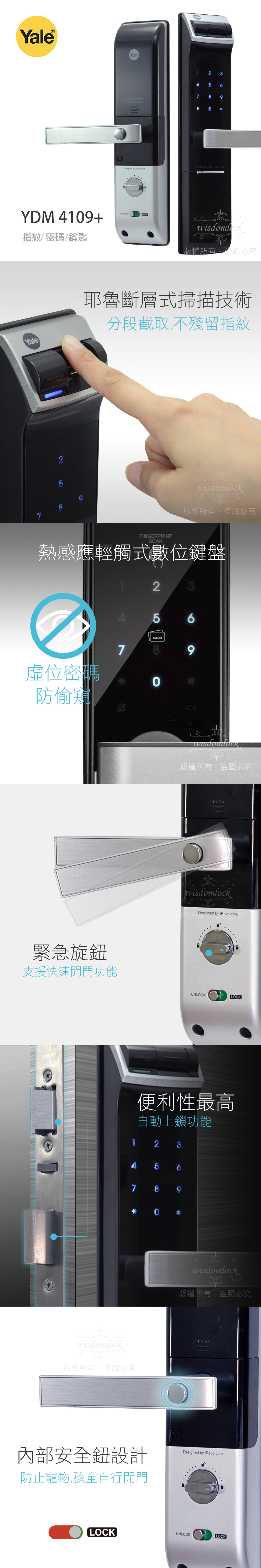 耶魯電子門鎖 YDM-4109A 指紋鎖 密碼鎖 機械鑰匙大門鎖