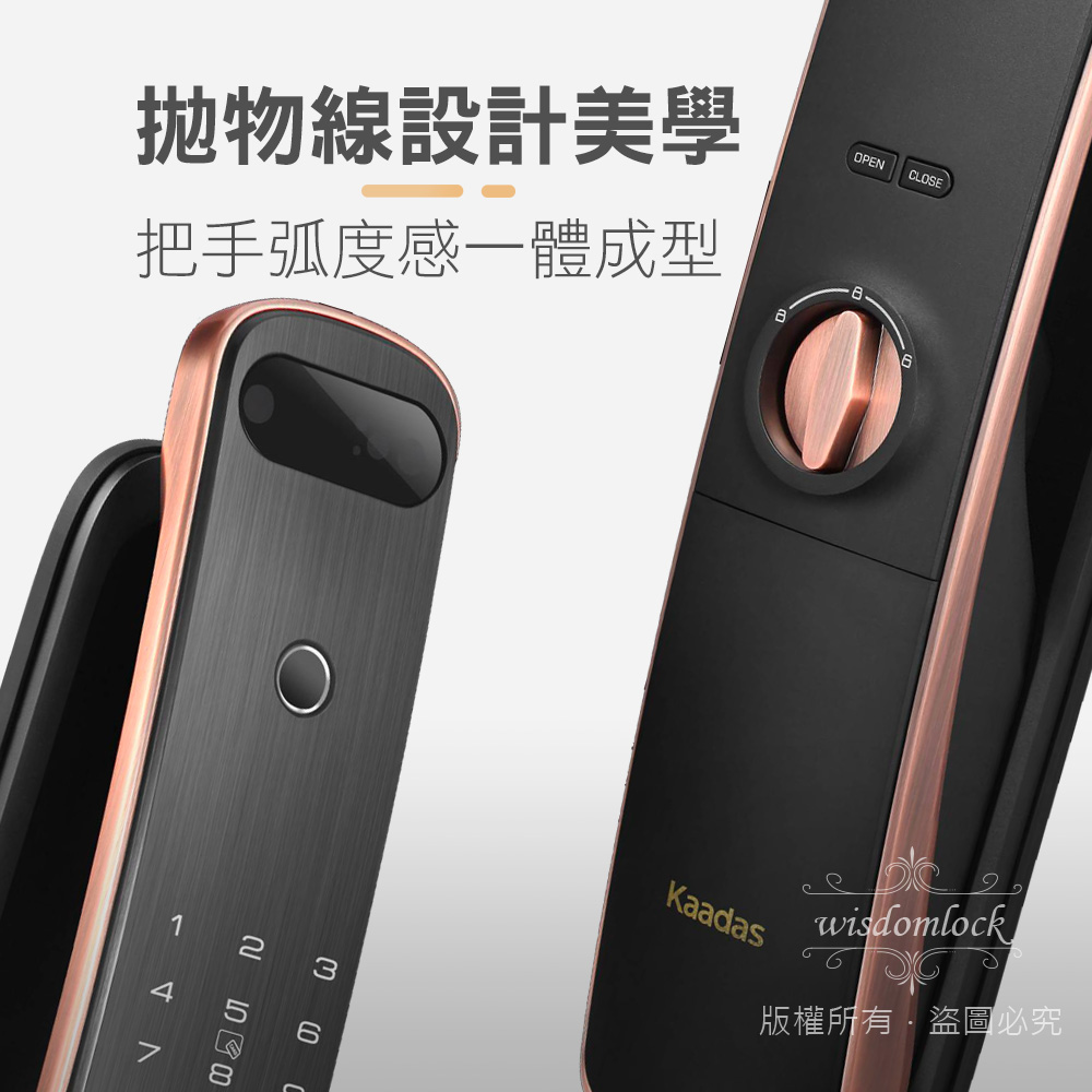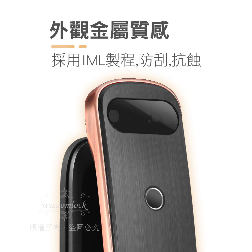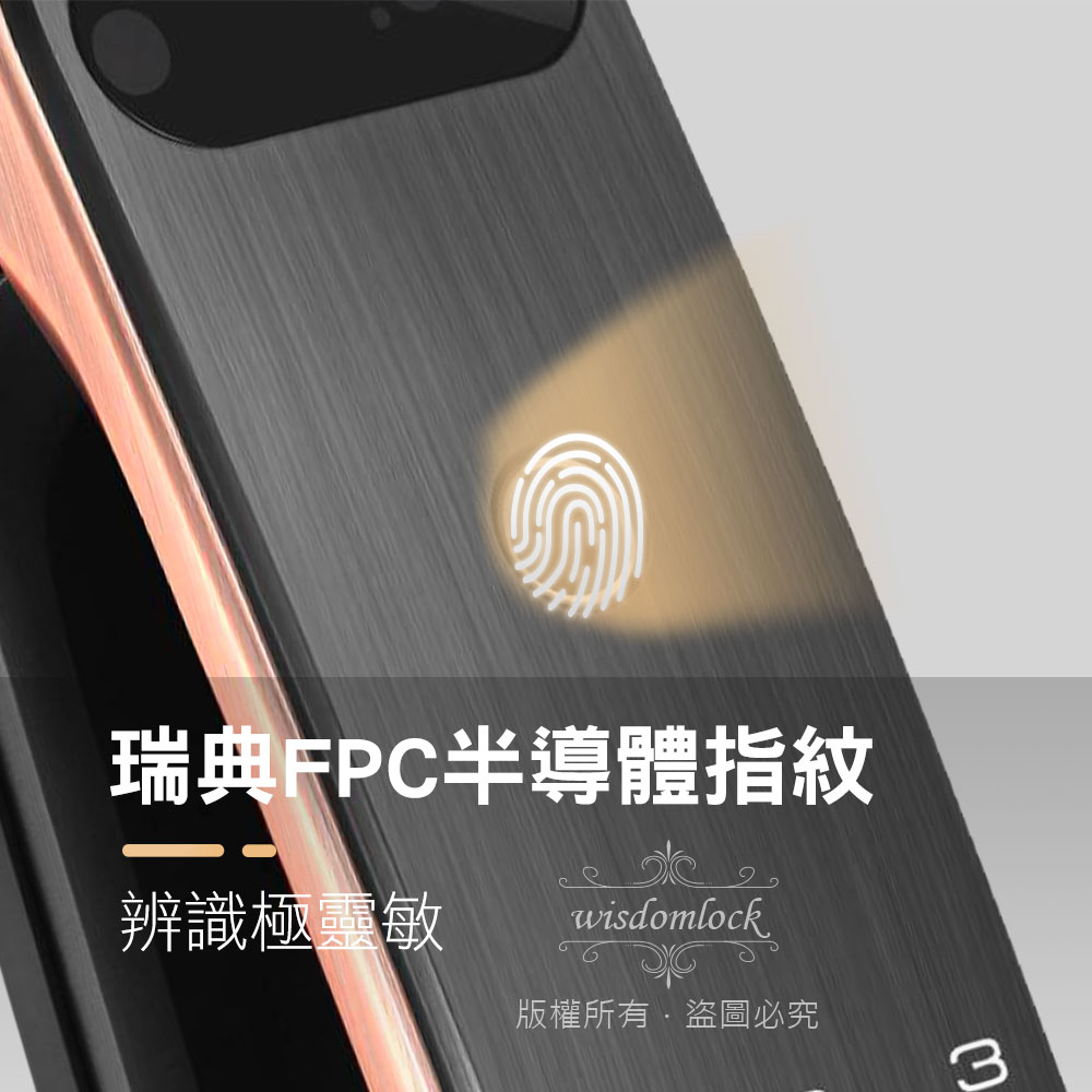 電子鎖有指紋和密碼輸入的雙重功能、精準辨識並排除老人指紋老化、小孩指紋較薄不清晰、和異物附著手指上的狀況、並在指紋掃瞄後不殘留指紋記憶、防止被盜取風險,外觀七層電鍍附有水平手把、結合一體成型的美感。
