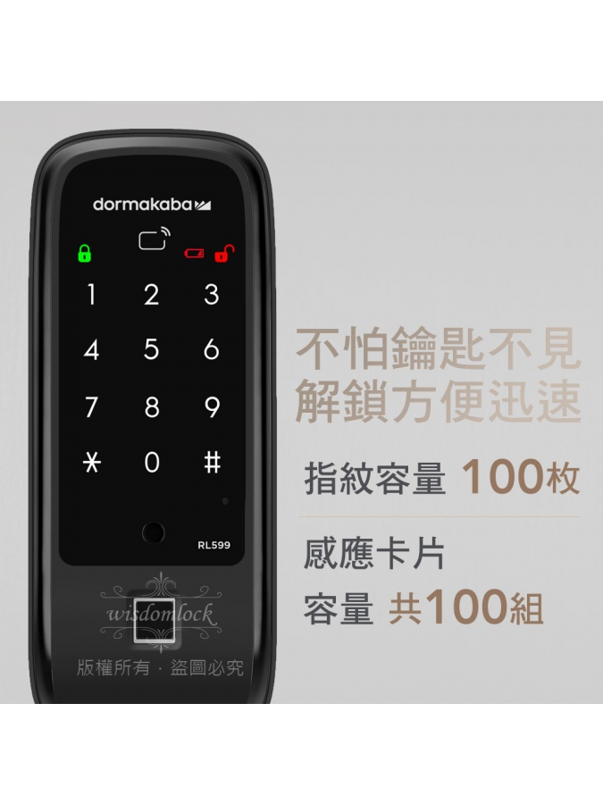新款 dormakaba電子鎖 RL599N 指紋 卡片 密碼 0800-880-650