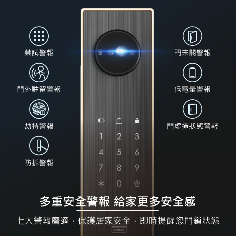 遠端貓眼|人臉|指紋|卡片|密碼|鑰匙|遠端|門鈴|多功能時效密碼 九合一電子鎖