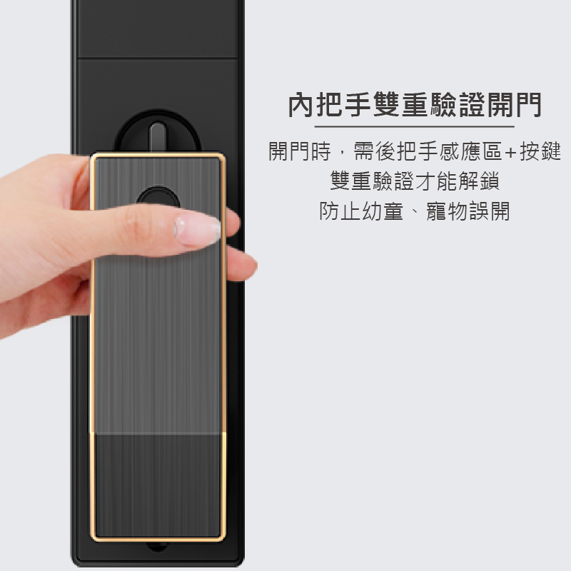 - 內鎖安全鈕,只有管理者及機械鑰匙可從外面打開
