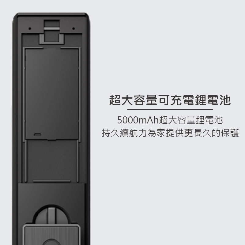 視訊鏡頭具備紅外線功能,可全天候看清門外視野,支援AI人臉識別演算法、指紋鎖功能,能辨識各種面容資訊,下次使用時能更快速完成辨識,鎖體內建5,000mAh大容量鋰電池,當電量過低時,手機App自動推播低電通知,內、外門鎖採用航空級別合金材質,面板表面採用IML工藝,霧面質感搭輔以絲紋理,不易沾染指紋和灰塵。同時搭配側邊的金屬色邊框,給人一種高貴精緻的感覺,適用市面上絕大多數的門扇。