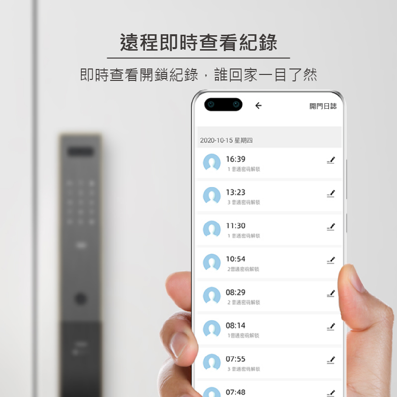 - 使用者權限管理功能【管理者權限、使用者權限、訪客權限】關門立即自動上鎖