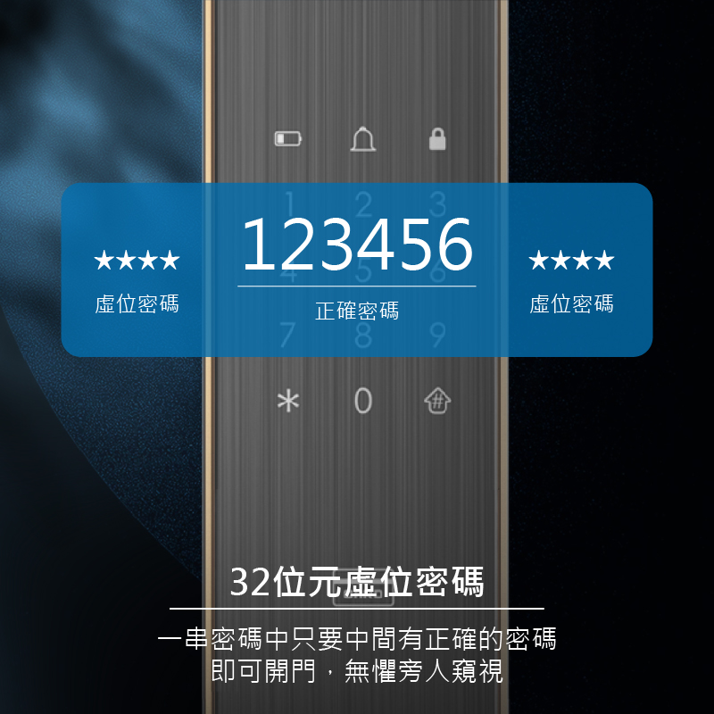 - 虛位密碼功能:支援