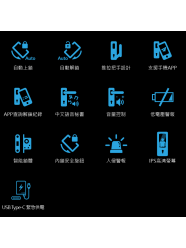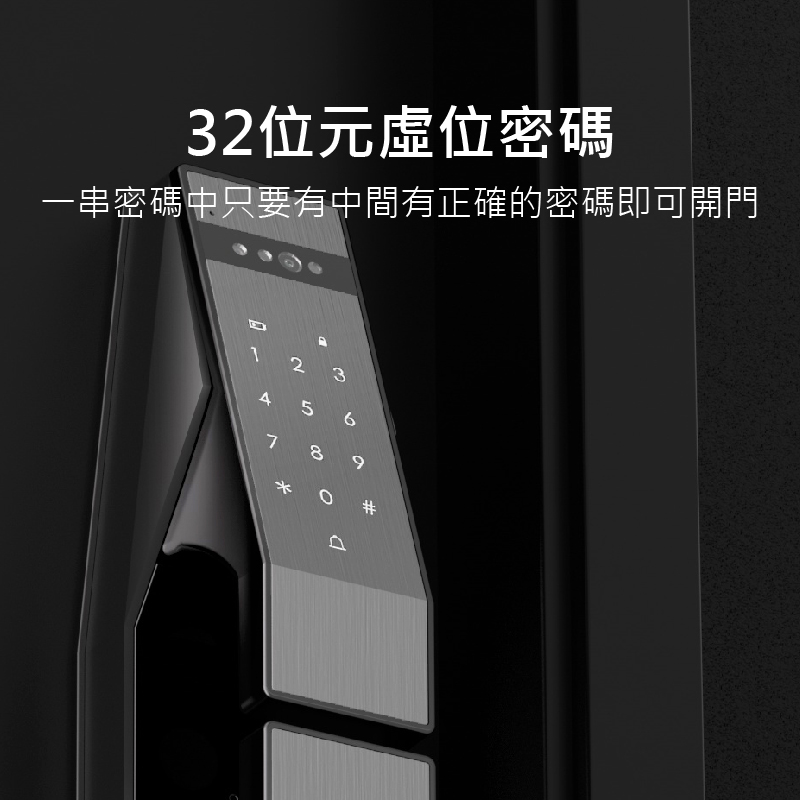 視訊鏡頭具備紅外線功能,可全天候看清門外視野,支援AI人臉識別演算法,能辨識各種面容資訊,下次使用時能更快速完成辨識,鎖體雙電池智能續航,5000MAH鋰電池+4節乾電池雙重電池設計,優先使用鋰電池,若裡電池沒電時將自動切換乾電池供電,即使沒電了也不用擔心,當電量過低時,手機App自動推播低電通知,內、外門鎖採用鋁合金材質,面板表面採用IML工藝,霧面質感搭輔以絲紋理,不易沾染指紋和灰塵。同時獨特的外型,給人一種未來感的感覺,適用市面上絕大多數的門扇。