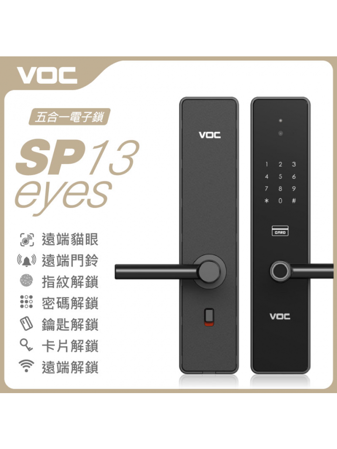 VOC 2023全新發表 SP13 Eyes智能門鎖 ,從人性化、智能化的角度出發,用現代科技和新型製作工藝,變革性地將指紋識別傳感器完美地融入執手中,真正做到開門一步到位。極致簡約的線條勾勒出產品超脫時代而臻至完美的科技感,採用多道工序及復雜工藝打造的啞光材質更為它增添一分磅礴厚重之美。