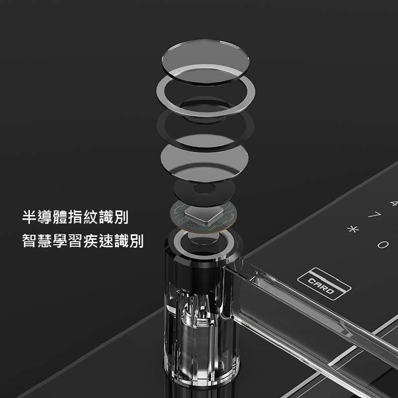 - 可設定為雙重認證開鎖,即指紋+ 密碼或卡片+ 密碼雙條件才能開門