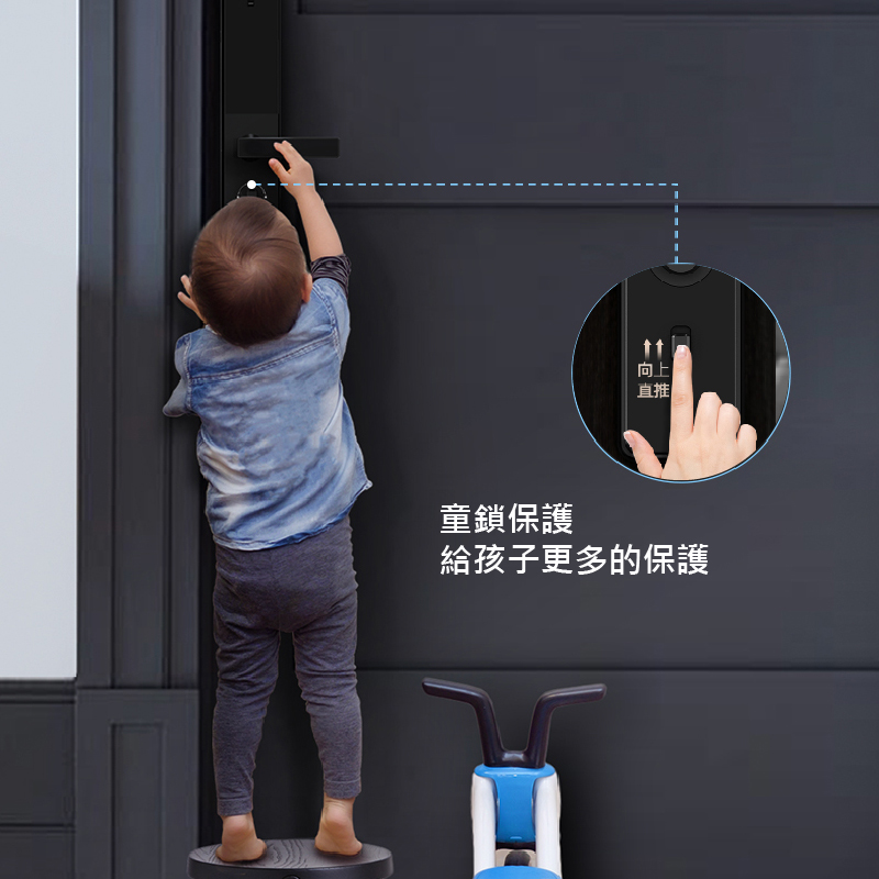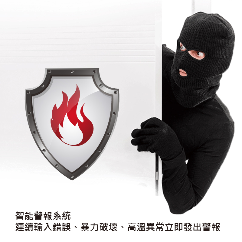 - 內鎖安全鈕,只有管理者及機械鑰匙可從外面打開