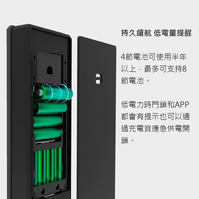 - 鎖體供電方式:4~8 顆 3 號鹼性電池
